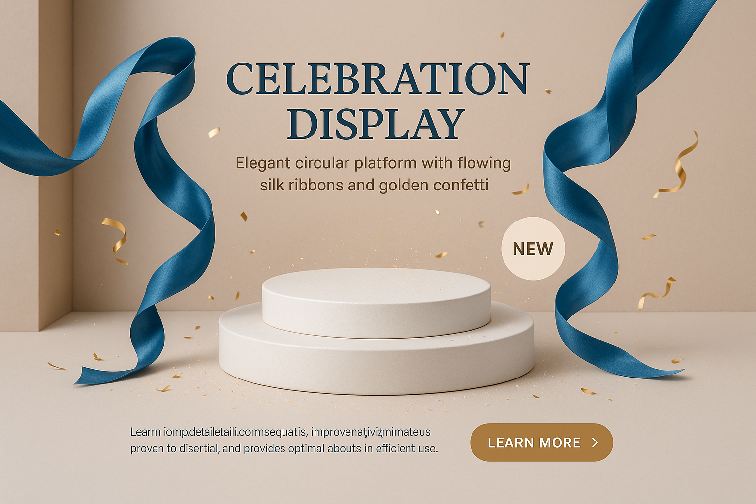 Elegant Product Showcase Banner with Ribbons and Confetti