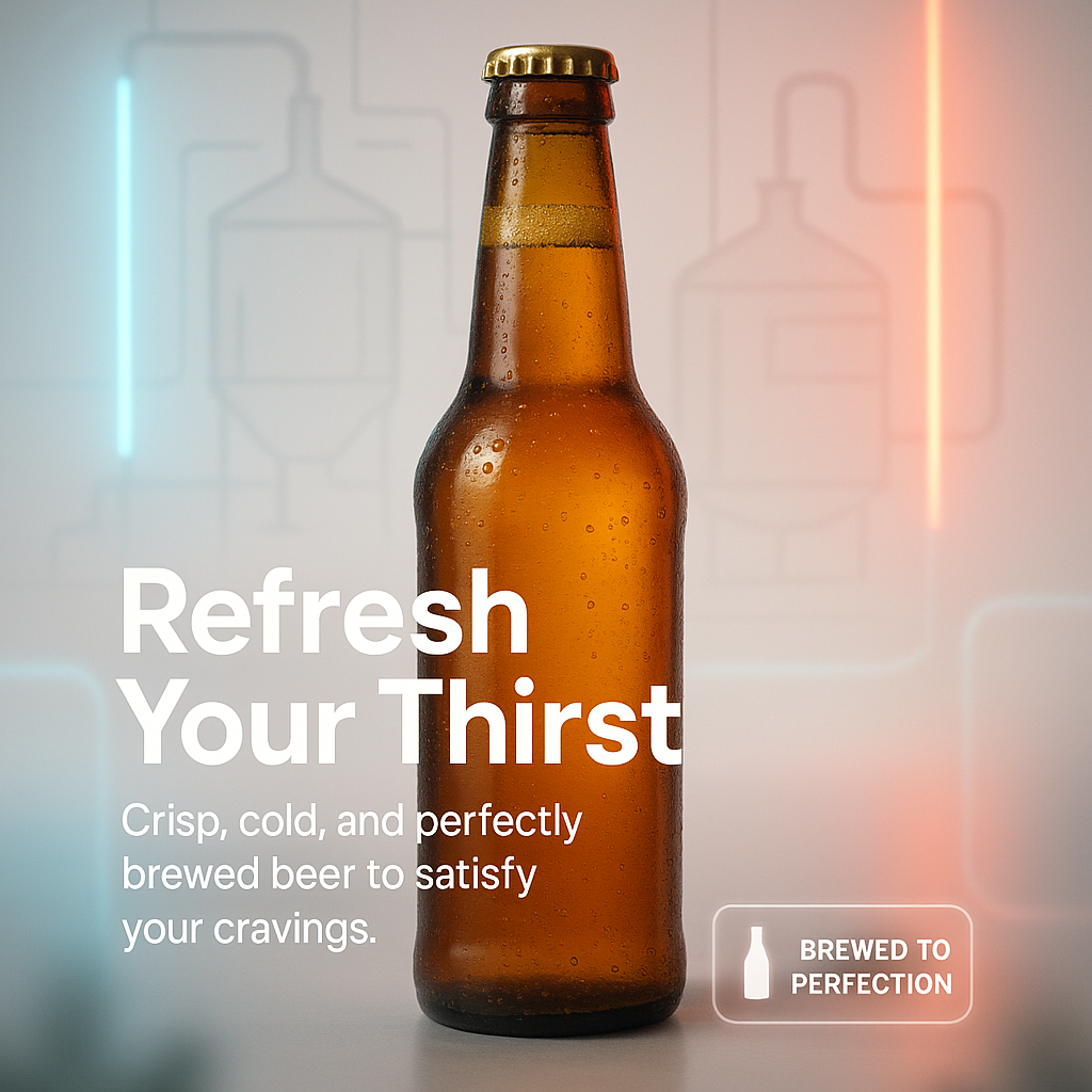 Promotional Beverage Advertisement Featuring a Cold Beer Bottle