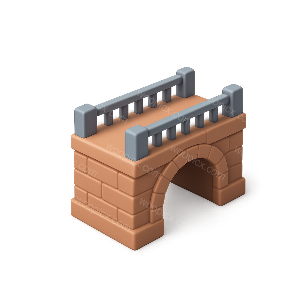 A stylized 3D icon of an arch bridge featuring a brick structure and railings, presented in a three-quarter view with a smooth, volumetric appearance on a gradient background.