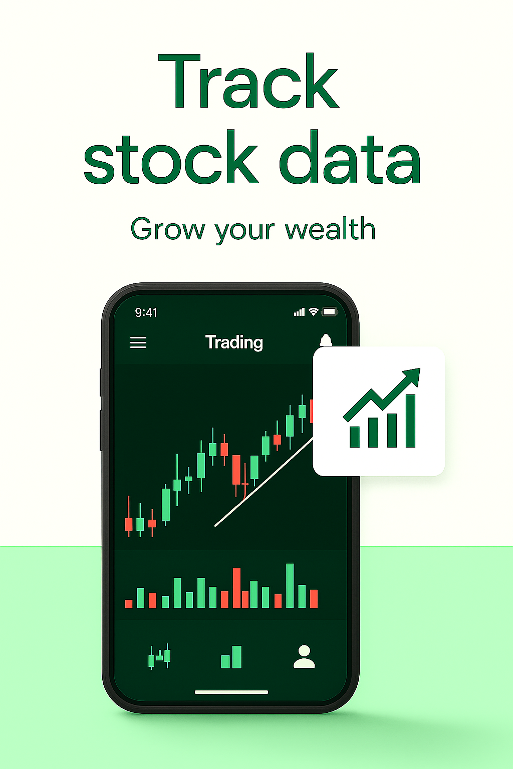 /Collection: /by davooda/Type: PNG/A modern mobile app interface showcasing stock market data analytics with a focus on user engagement and wealth growth. The design features a visually appealing layout and intuitive graphics.