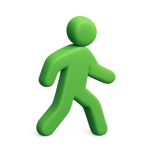 A stylized 3D green figure in a walking pose, ideal for representing movement or navigation in digital interfaces. Its smooth design adds a modern touch suitable for various applications.
