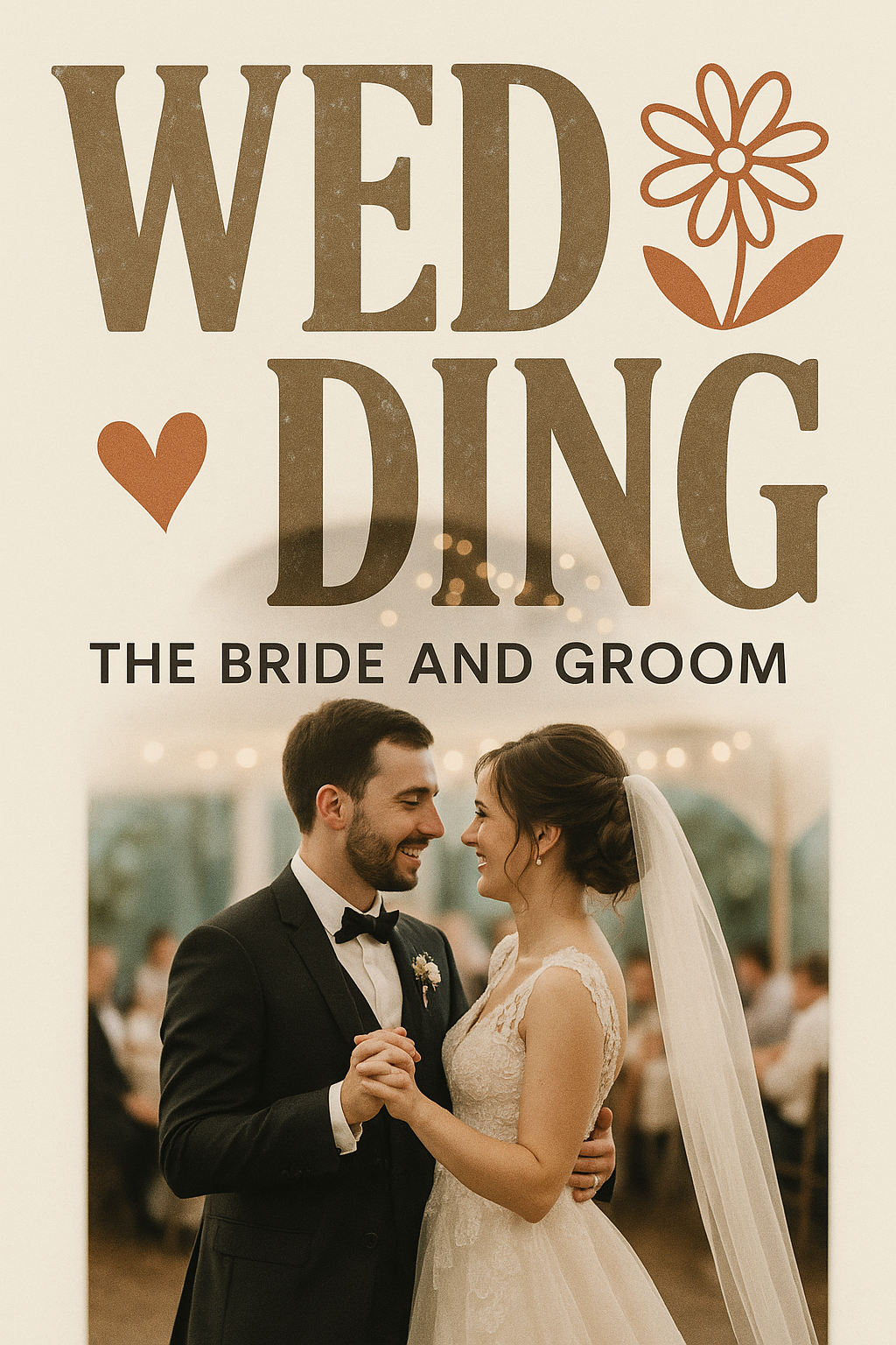 Wedding Celebration Graphic Featuring Couple in Romantic Setting