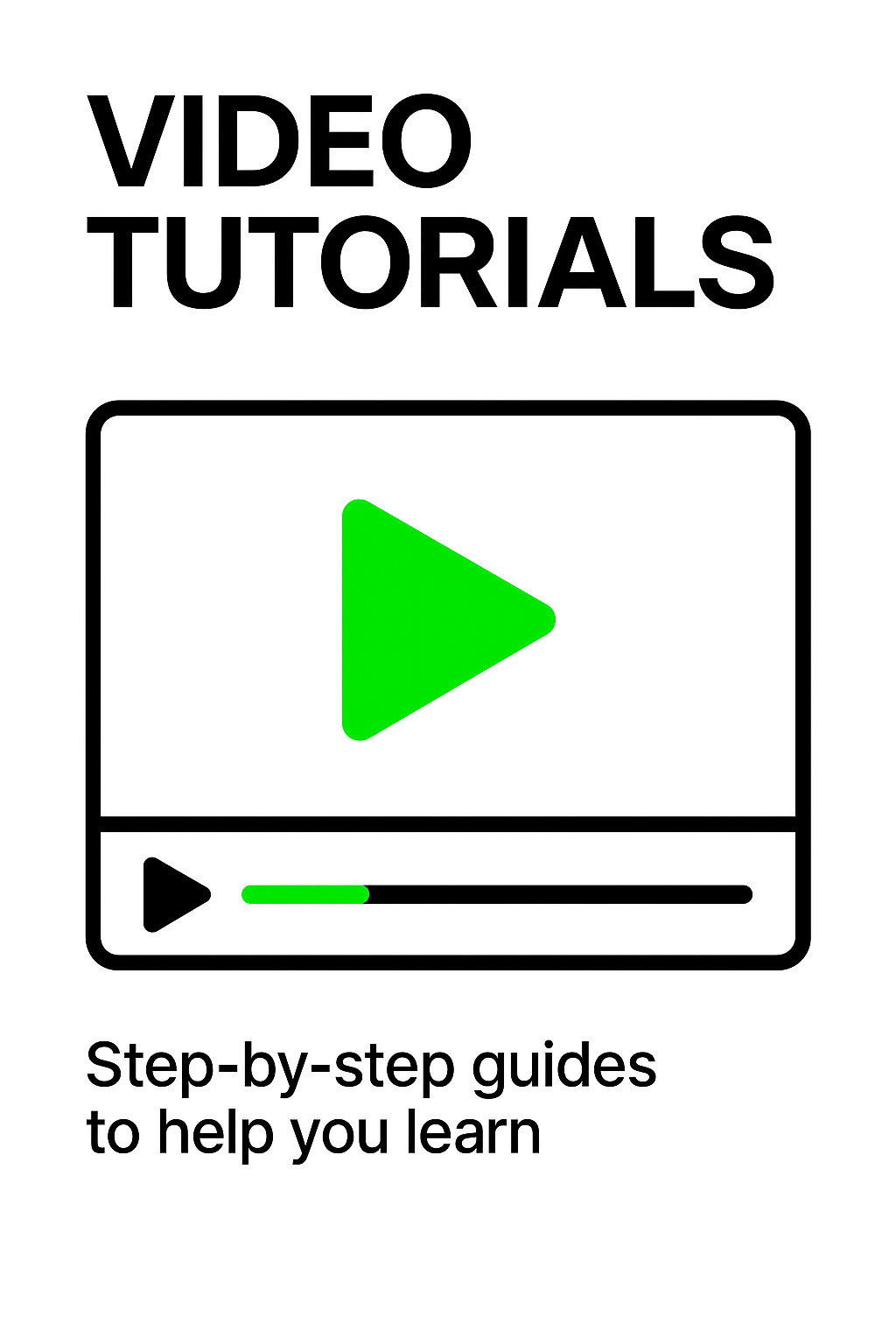 Simple and modern graphic representing video tutorials, featuring a play button and step-by-step learning theme, ideal for educational content.