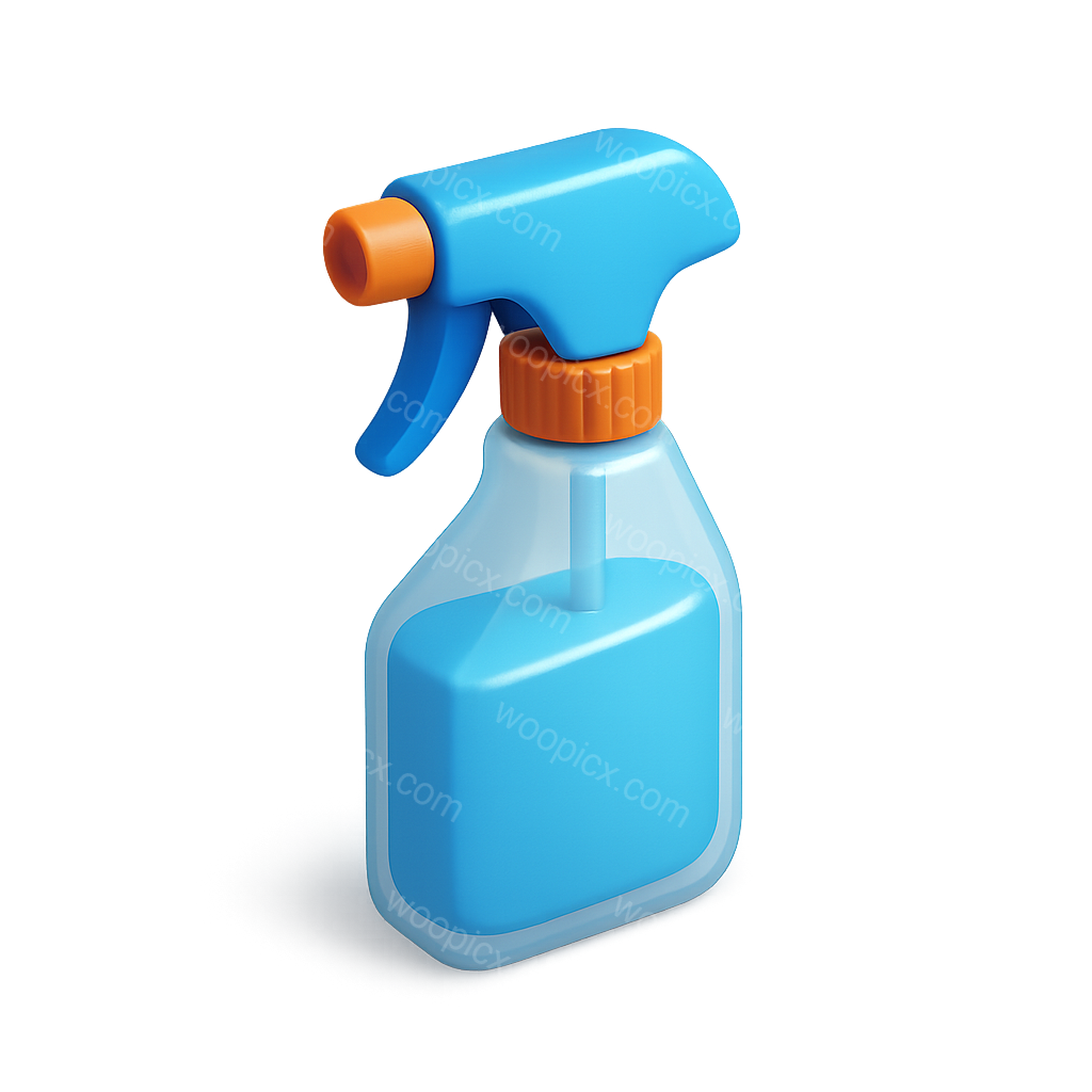 /Premium/Collection: /by davooda/Type: PNG/A visually appealing 3D icon of a window cleaner spray bottle, featuring a transparent background and a three-quarter view. The bottle is predominantly blue with an orange nozzle.