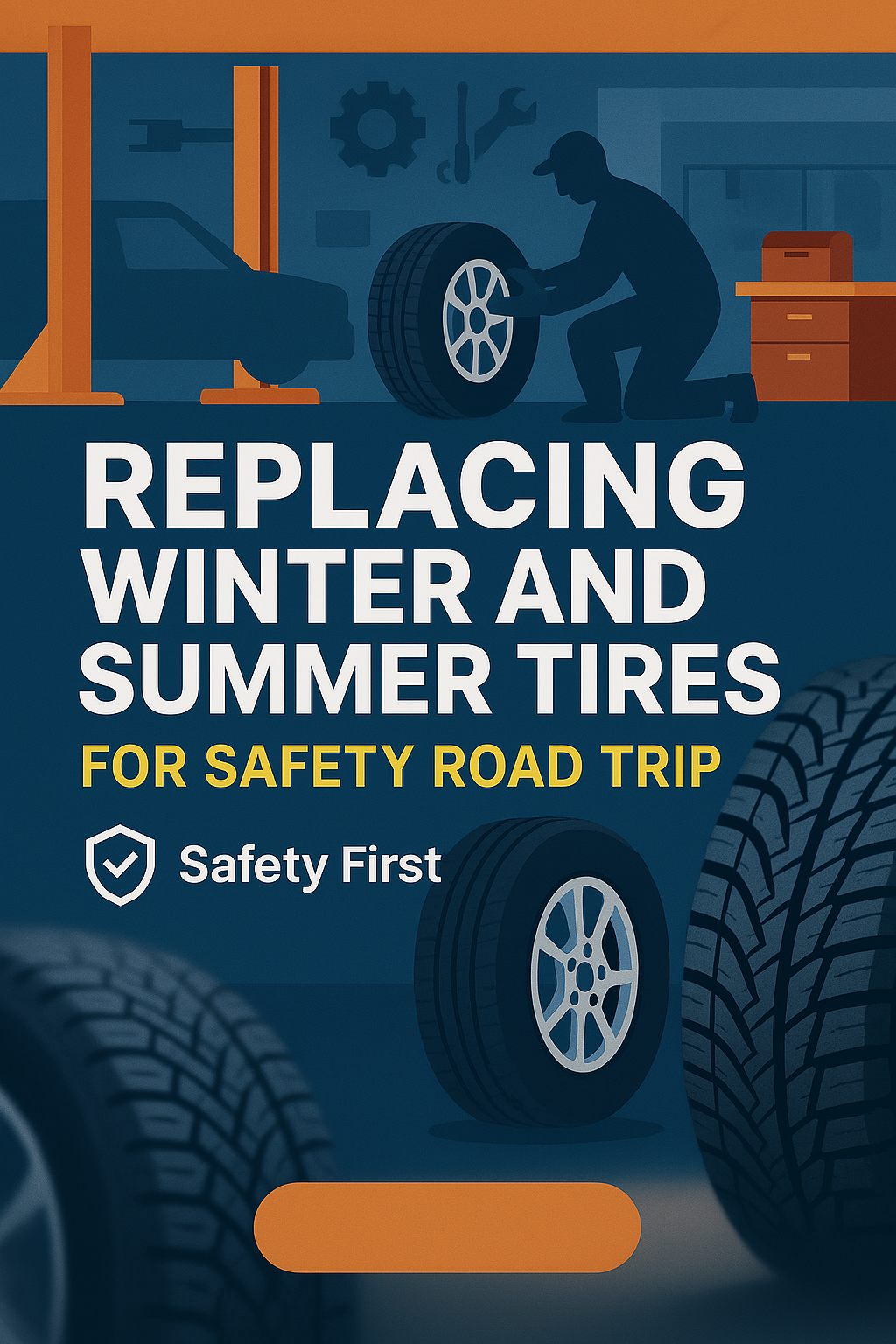 /Collection: /by davooda/Type: PNG/A visually engaging infographic highlighting the importance of replacing winter and summer tires for safe road trips, featuring illustrations and bold text.