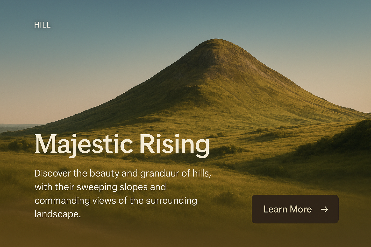 A stylish web page design showcasing a hill with a smooth gradient background. Features a title, descriptive text, and a call-to-action button with an icon.