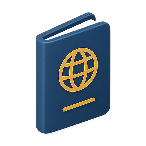 Stylized 3D icon representing a passport featuring a globe design, suitable for travel-related applications or websites.