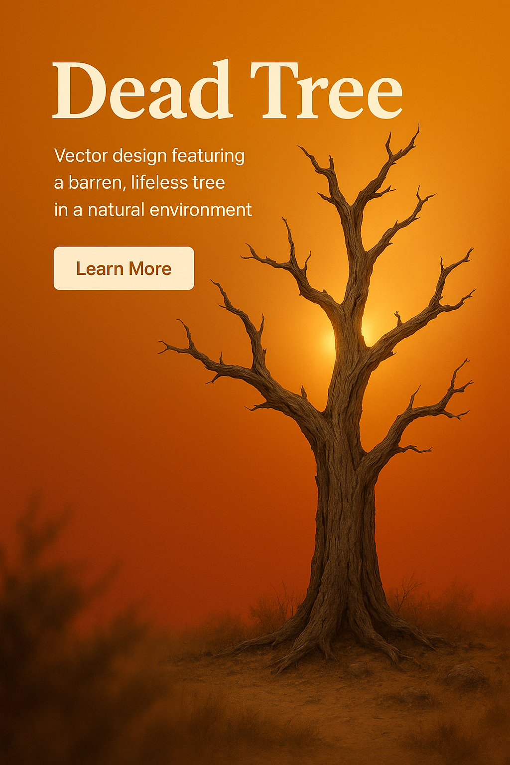 This image showcases a vector design of a barren tree against a warm sunset, ideal for nature-themed content or environmental awareness campaigns.