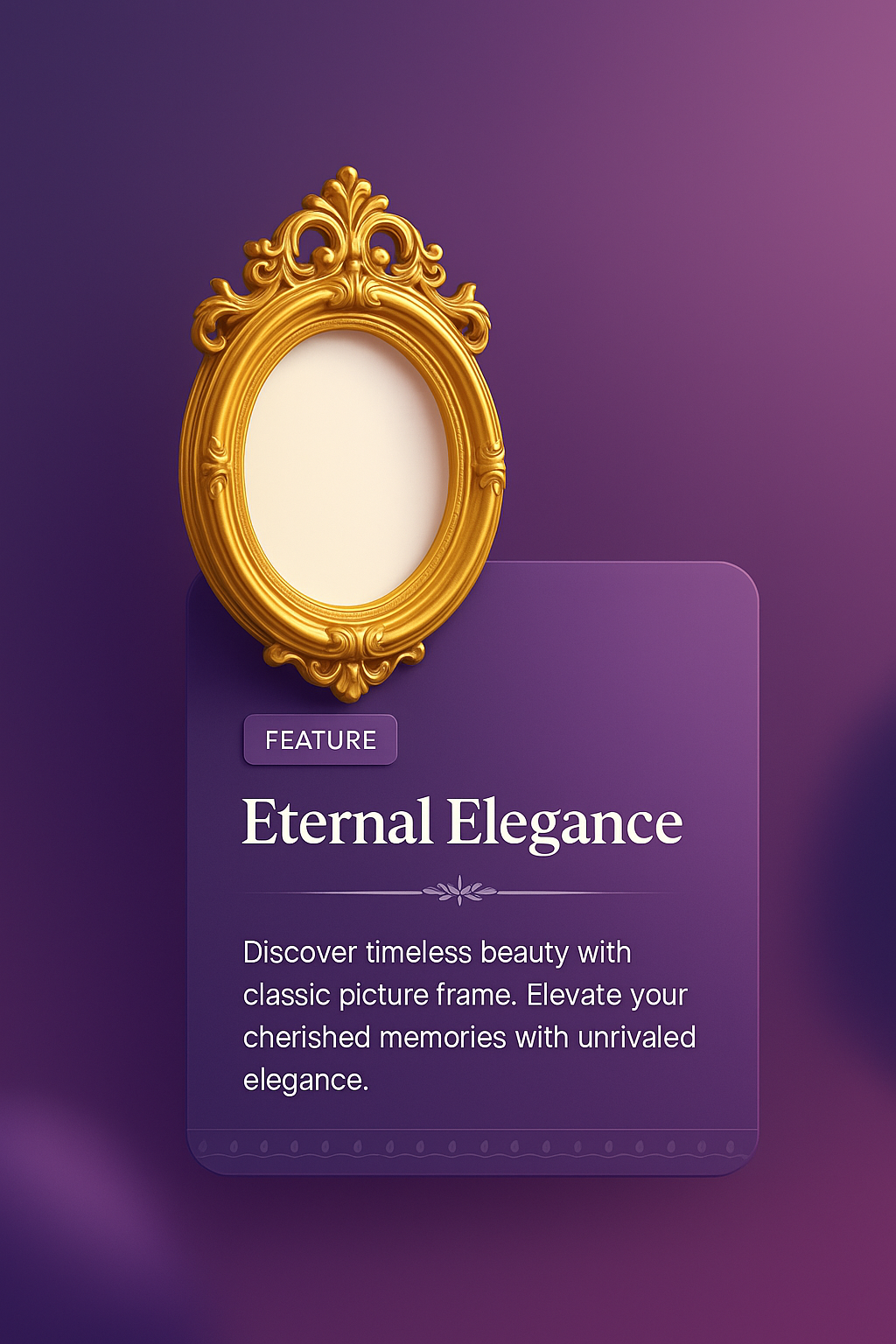 /Collection: /by davooda/Type: PNG/A beautifully designed antique round oval gold picture frame set against a smooth gradient background. The frame is elegantly showcased alongside a descriptive block highlighting its timeless beauty.