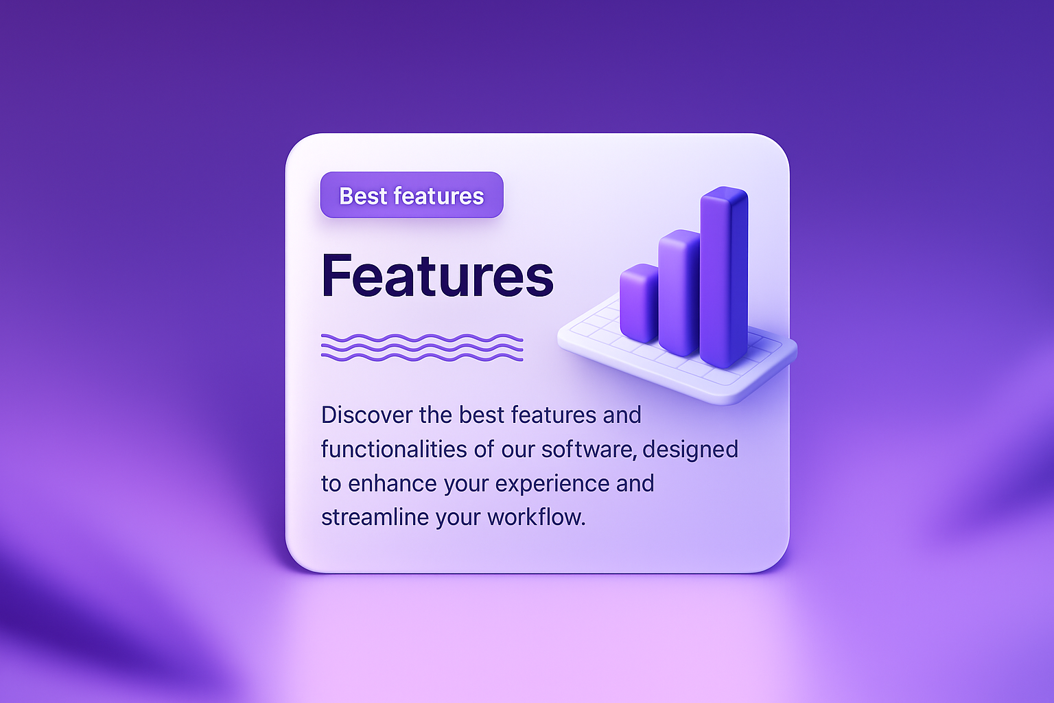 /Collection: /by davooda/Type: PNG/An abstract purple gradient background featuring a 3D block showcasing software features. The design includes a chart and textual elements in a cohesive layout.