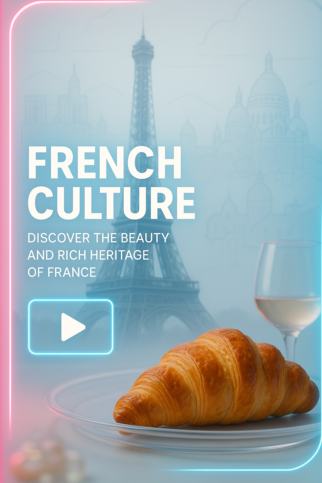 Promotional Graphic for French Culture Featuring Croissant and Eiffel Tower