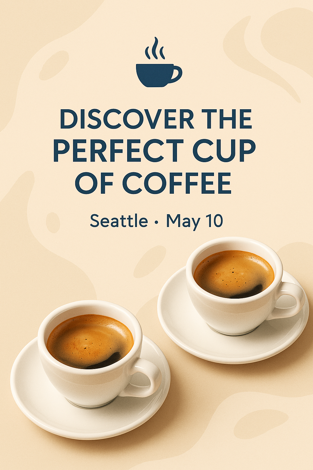 Stylish promotional image for a coffee event, showcasing two cups of espresso on a minimalist background. Ideal for social media or event marketing.