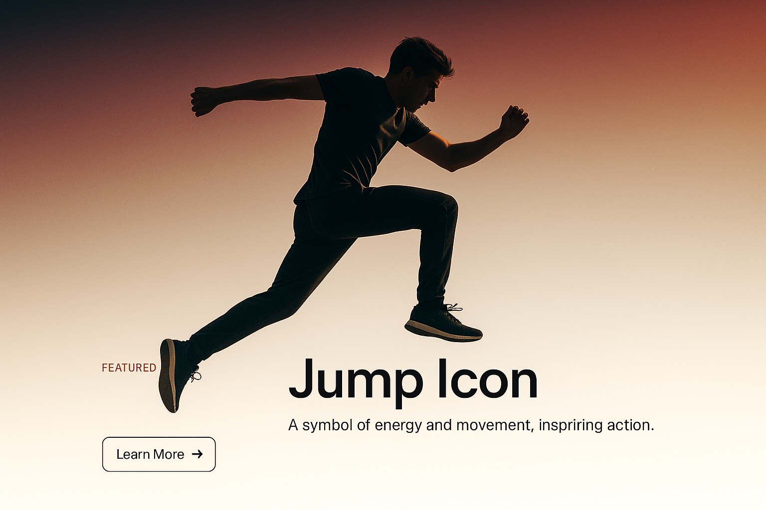A stylish jump icon illustration featuring a silhouette of a person in motion against a gradient background. The design includes a call-to-action button and clear text elements, ideal for web use.