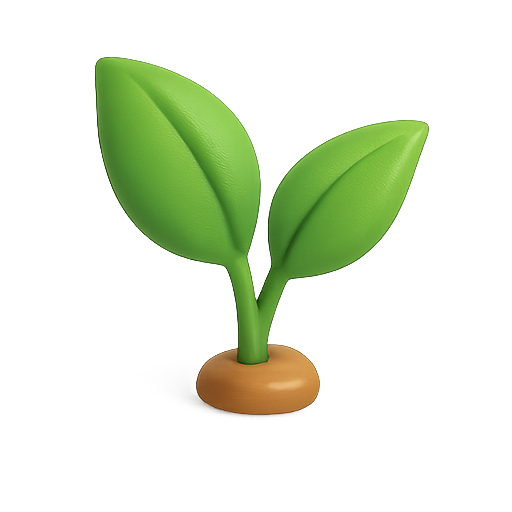 A simple and modern plant icon featuring two vibrant green leaves sprouting from a brown base. Ideal for eco-friendly themes, gardening apps, or sustainability projects.