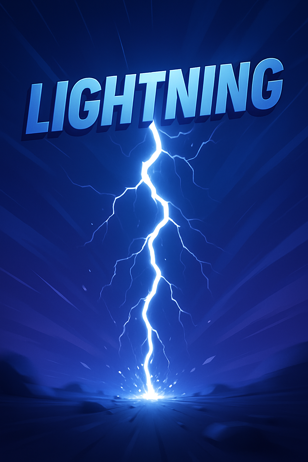 A captivating illustration of a lightning bolt striking down, set against a deep blue background. The bold title 'LIGHTNING' prominently features at the top, enhancing the dynamic feel of the scene.