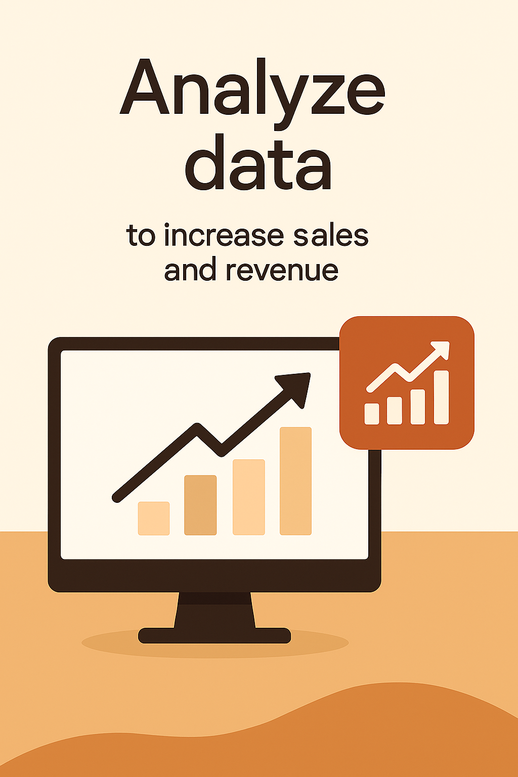 A modern graphic illustrating data analysis to enhance sales and revenue, featuring a computer screen with a growing graph. Ideal for business presentations or marketing materials.