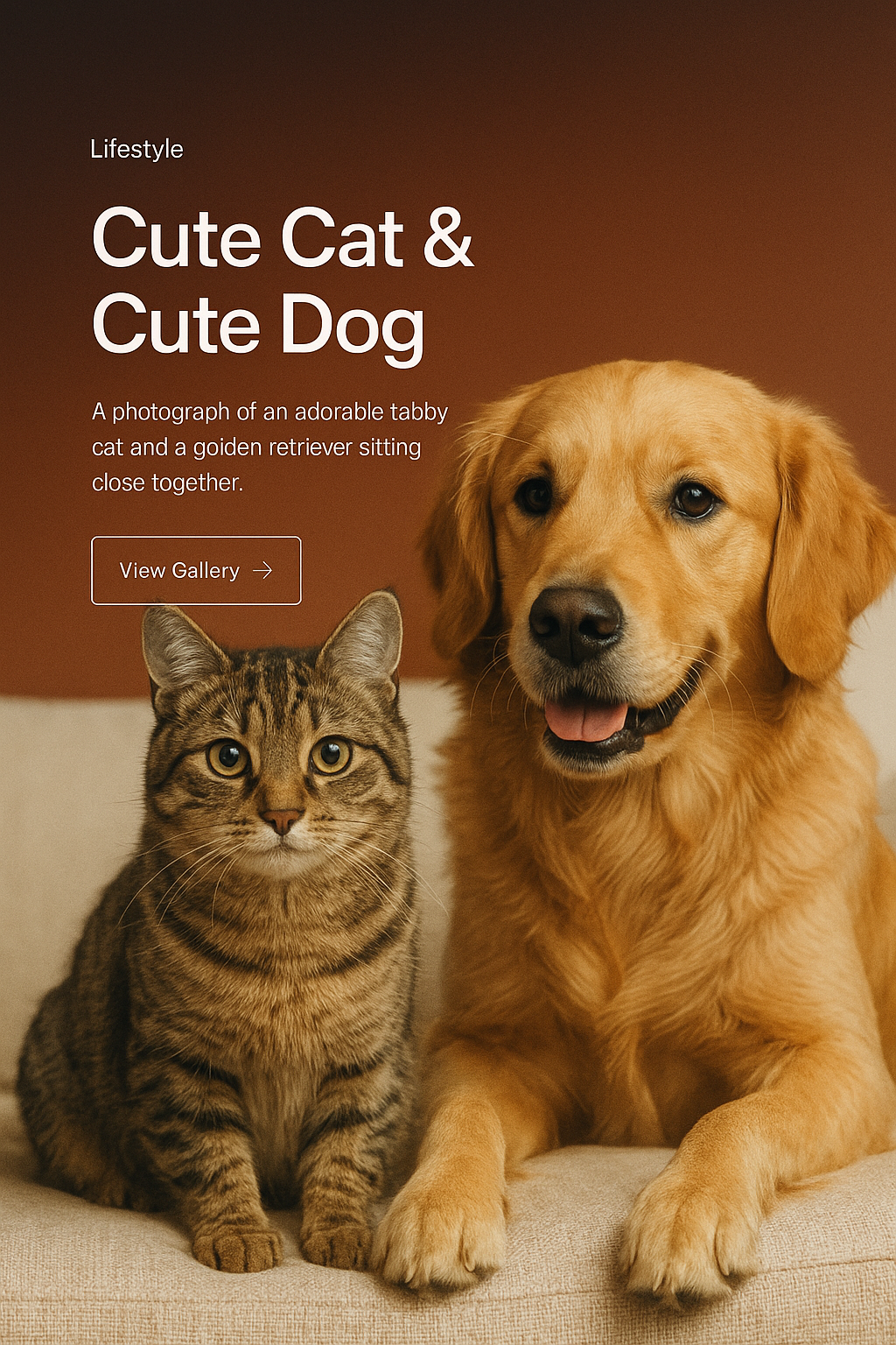 Cute Cat and Dog Together on a Sofa with Informative Feature Block