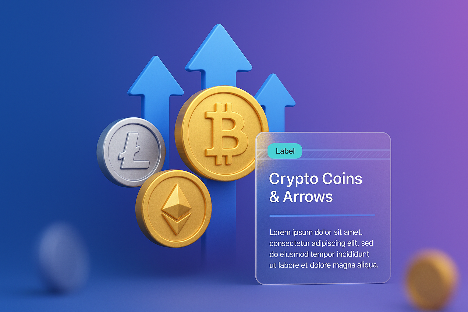 Stylized 3D Illustration of Crypto Coins and Arrows