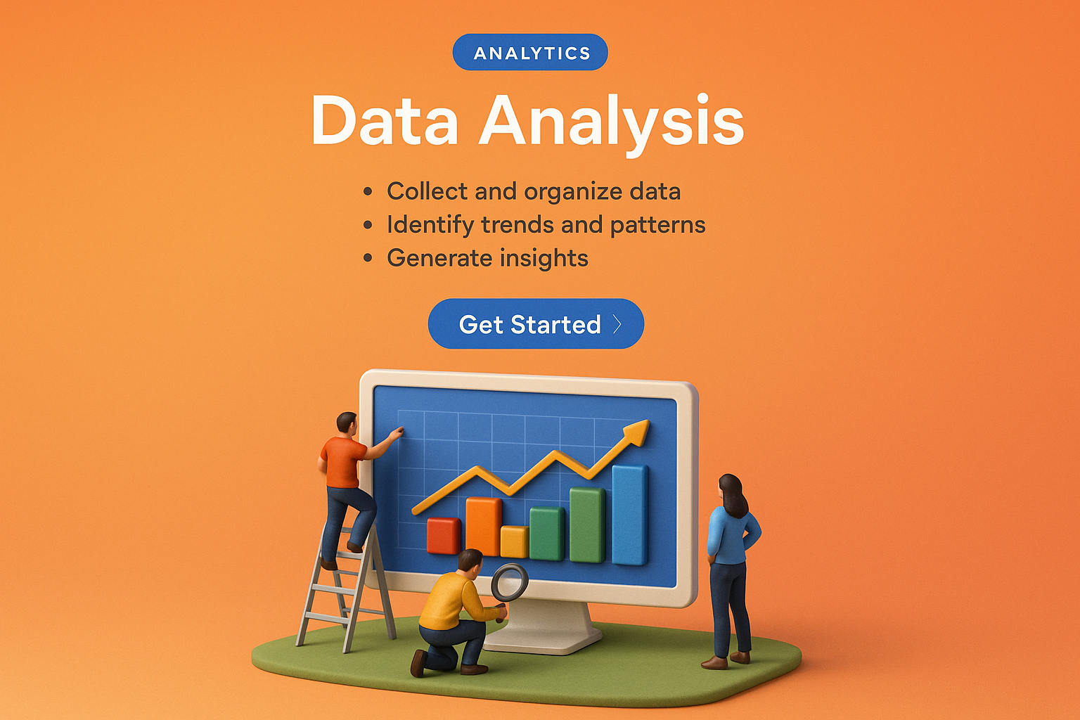 /Collection: /by davooda/Type: PNG/A zoomed-out 3D scene featuring miniature figures engaged in data analysis tasks. The vibrant background enhances the focus on the computer screen displaying colorful graphs and actionable insights.