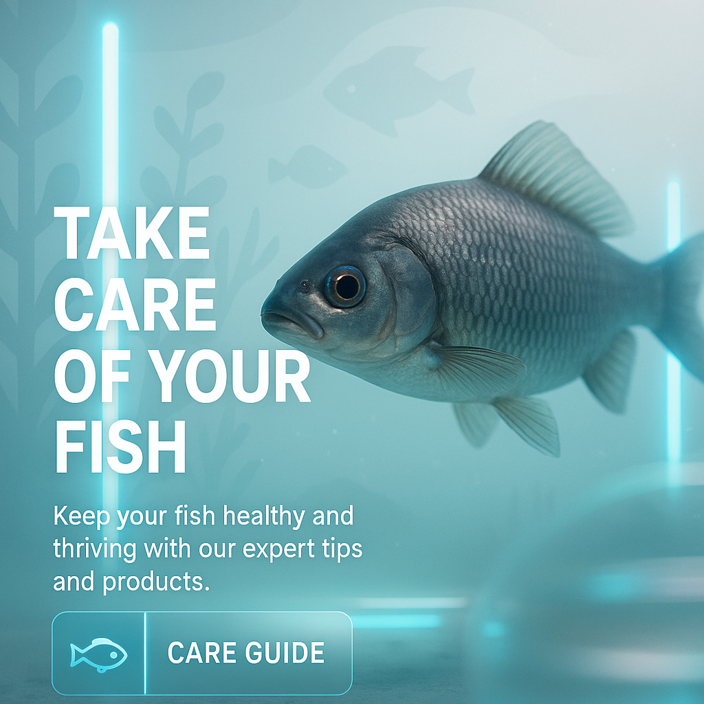 Engaging promotional image for fish care guide featuring a realistic fish illustration set in a tranquil underwater environment. Ideal for pet care marketing.