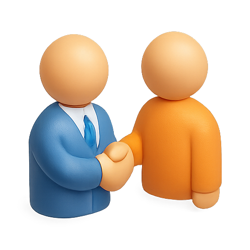 /Collection: /by davooda/Type: PNG/Stylized vector graphic featuring two abstract figures in business attire shaking hands, symbolizing partnership and collaboration. Ideal for corporate communications and relationship-building themes.