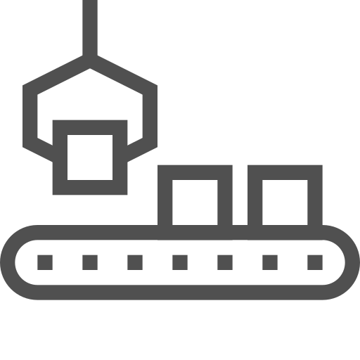 outline simple icon: assembly line, automation, conveyor belt, factory, industrial