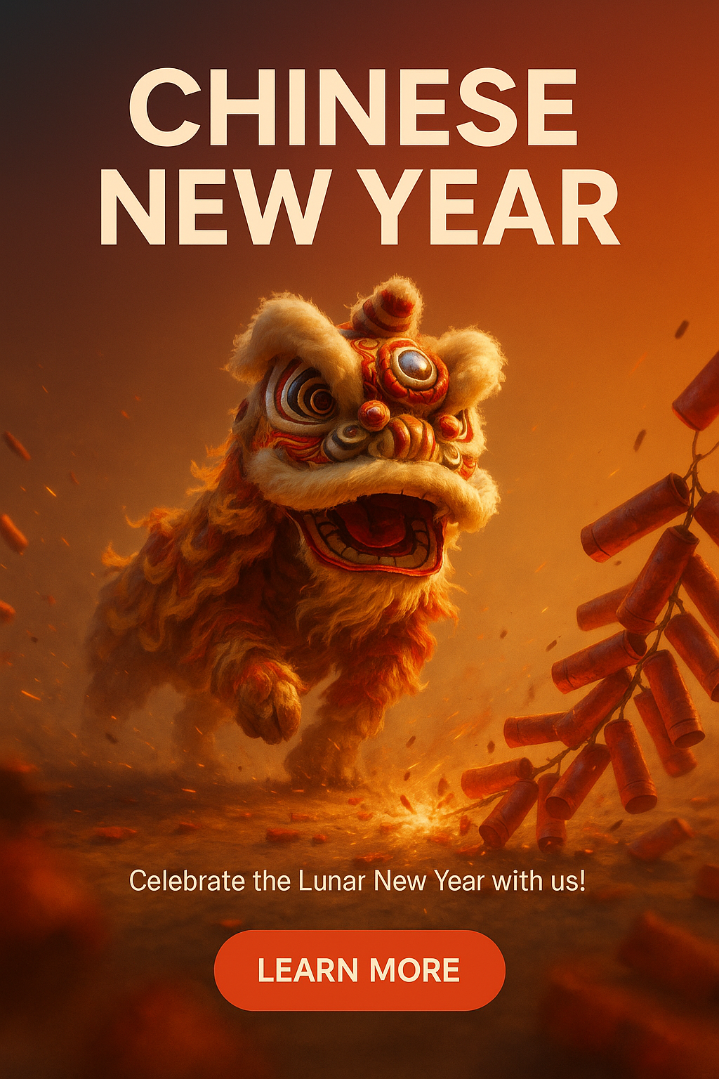 Vibrant Celebration of Chinese New Year with Lion Dance Theme