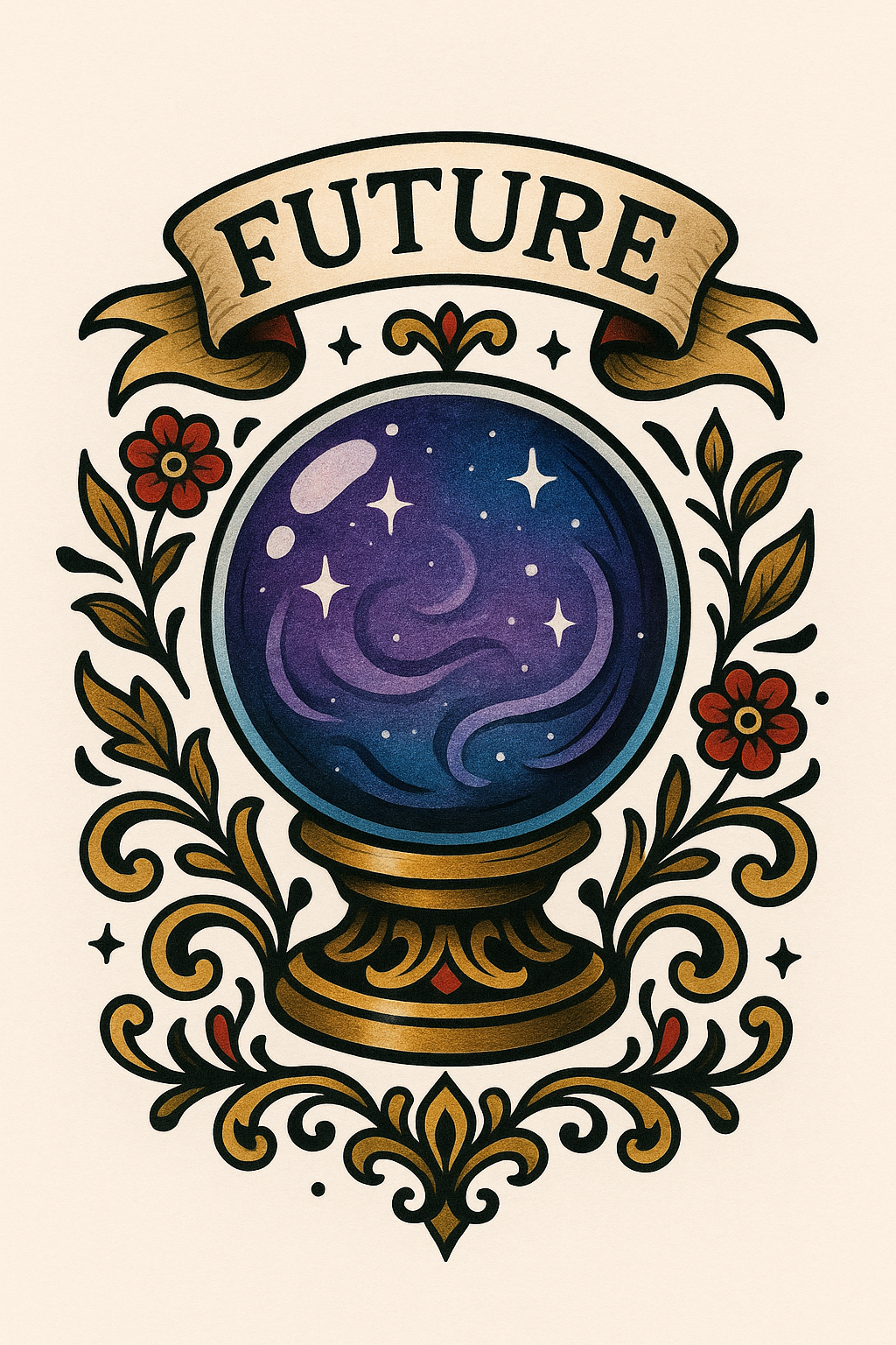 Illustrative Crystal Ball Design with Floral Elements