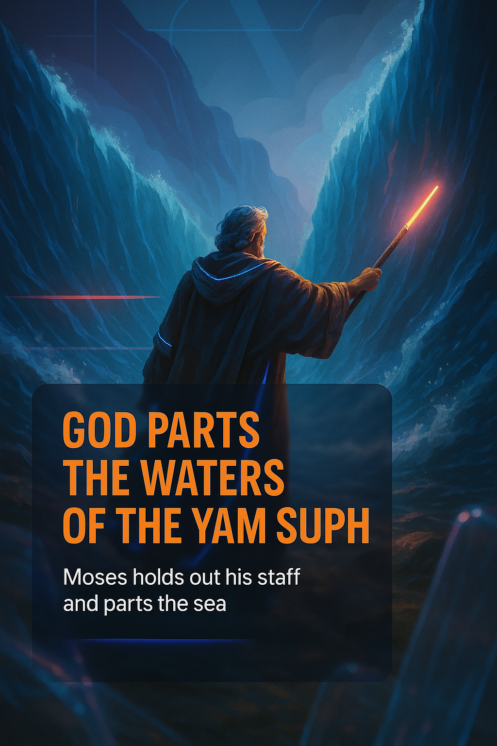 /Collection: /by davooda/Type: PNG/A captivating digital artwork depicting Moses holding a staff while parting the waters of the Yam Suph. The scene combines dramatic lighting and vibrant colors, suitable for religious or inspirational themes.