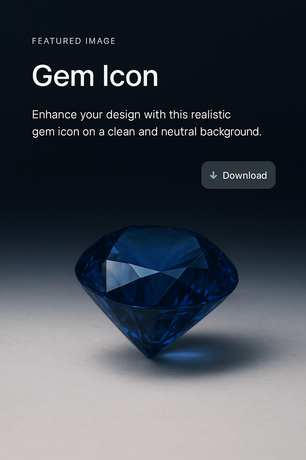 A realistic gem icon displayed on a neutral gradient background. The deep blue diamond is highlighted, enhancing any design. Includes a download button.
