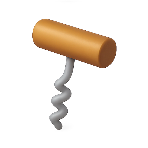 A minimalist corkscrew design featuring a bold orange handle and white spiral. Ideal for product mockups or kitchenware branding.
