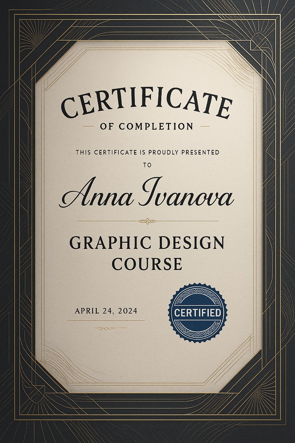 /Collection: /by davooda/Type: PNG/Stylish certificate featuring an ornate design, ideal for recognizing course completion. Suitable for educational institutions and professional training programs.