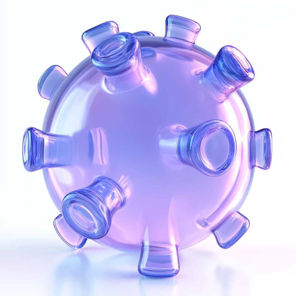 /Collection: /by davooda/Type: PNG/A visually striking 3D render of a virus model characterized by transparent, bulbous shapes. This design is ideal for educational content, scientific illustrations, or health-related media.