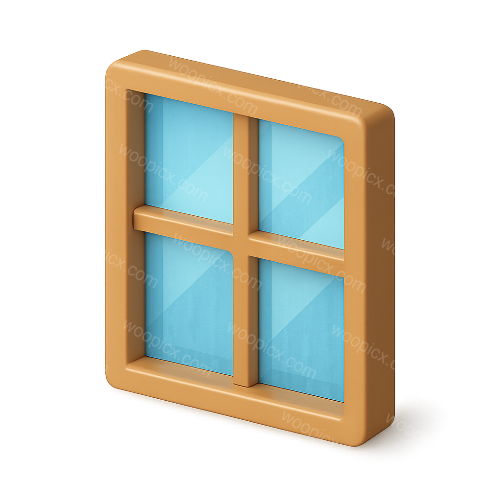 /Premium/Collection: /by davooda/Type: PNG/A visually appealing 3D window icon featuring a frame with four glass panes. The design has a warm color palette and a glossy finish, set against a subtly gradient background.