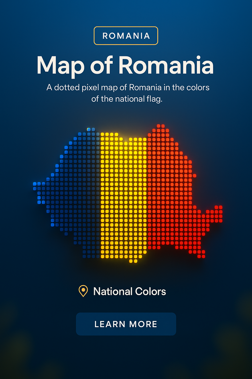 Dotted Pixel Map of Romania in National Flag Colors