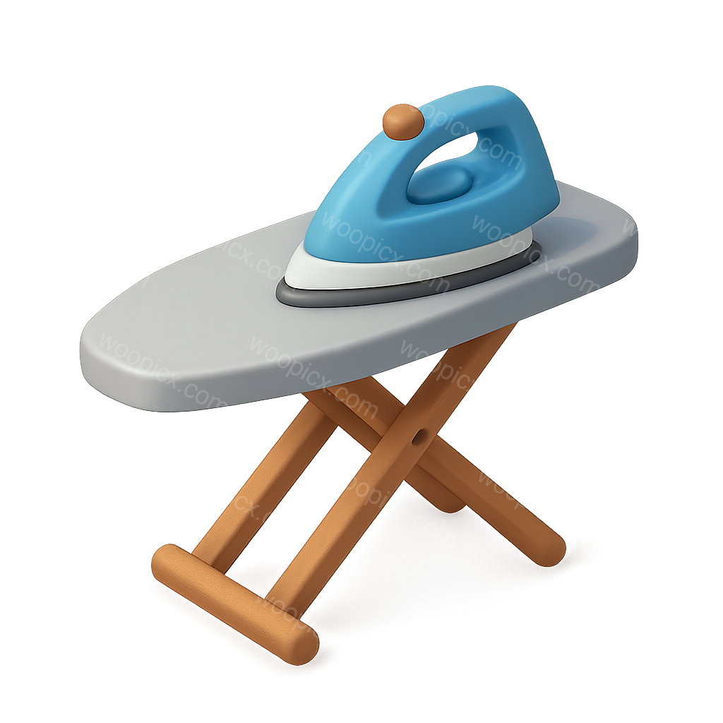 Stylish 3D Ironing Board and Iron Icon with Transparent Background