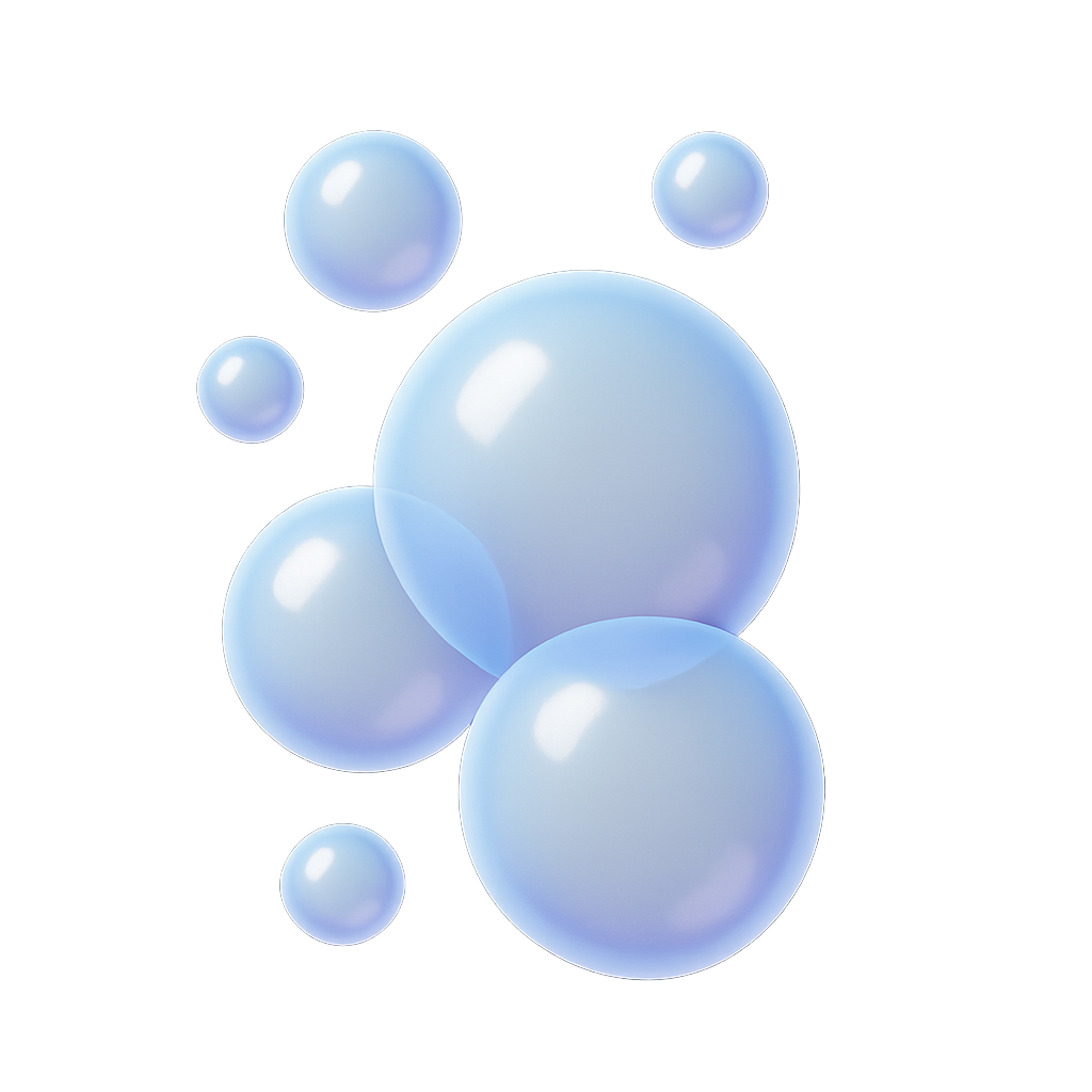 A visually appealing 3D icon of bubbles in a three-quarter view, showcasing a glossy, volumetric design against a smooth gradient background.