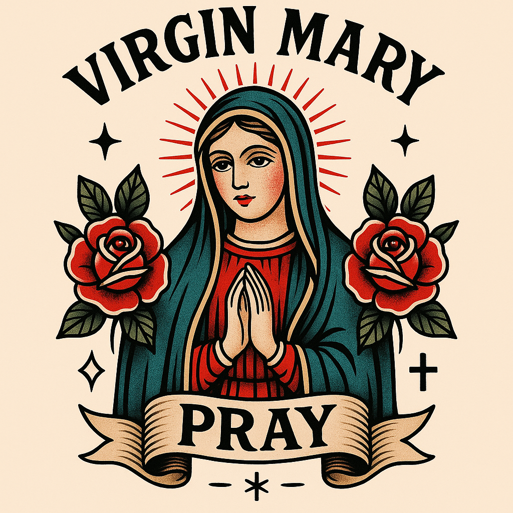 Illustrative Design of Virgin Mary Surrounded by Roses