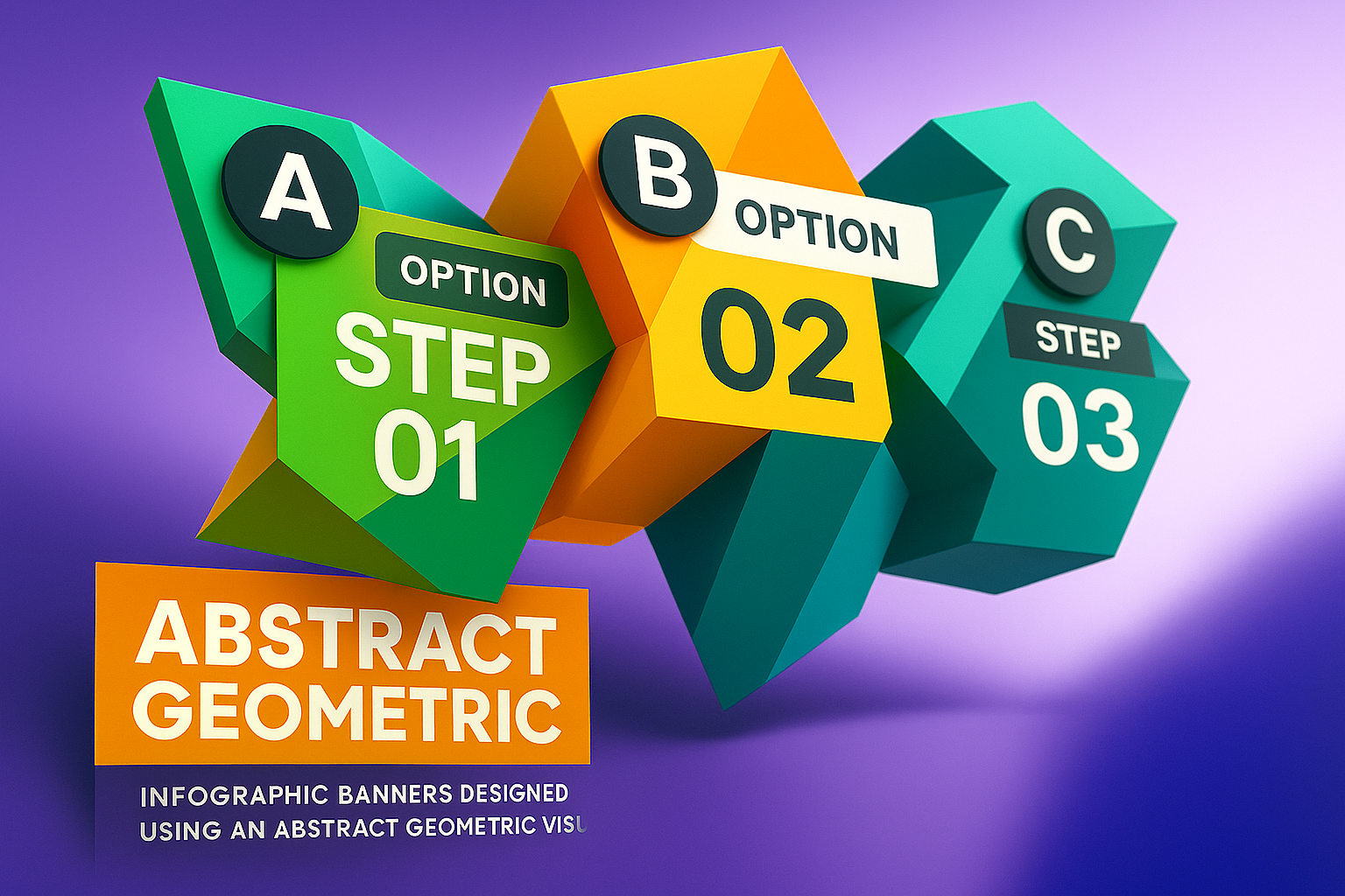 /Collection: /by davooda/Type: PNG/Vibrant infographic banners featuring an abstract geometric design, ideal for showcasing options or steps in a visually engaging manner for presentations or marketing.