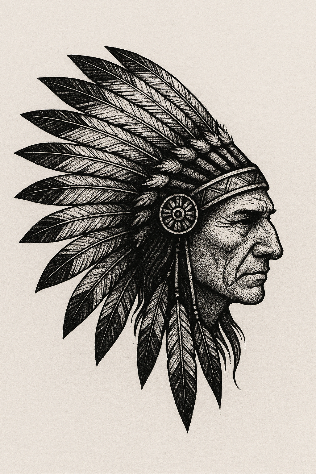 Detailed Illustration of a Native American Chief with Feathered Headdress