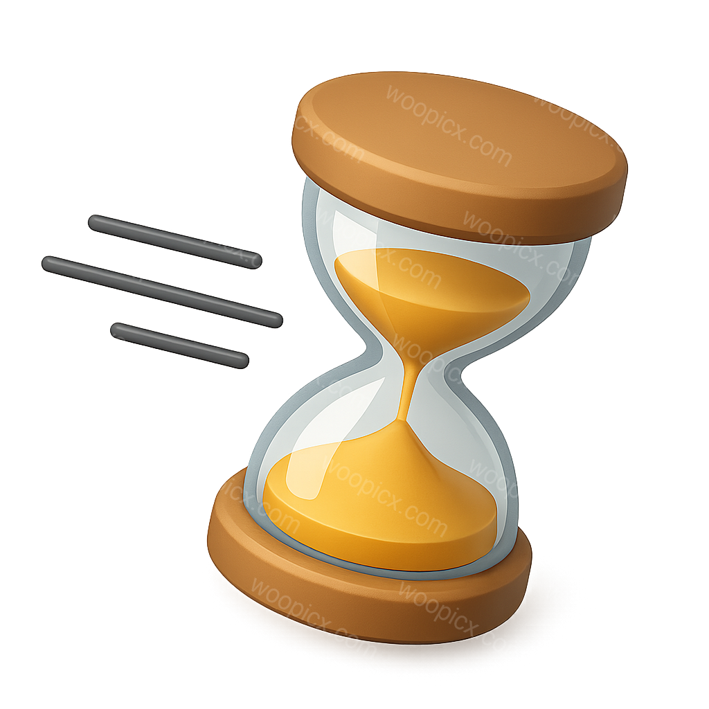 /Premium/Collection: /by davooda/Type: PNG/A stylized 3D hourglass icon featuring motion lines, giving a sense of movement. The hourglass is designed with a transparent background, showcasing a golden sand hourglass in a three-quarter view.