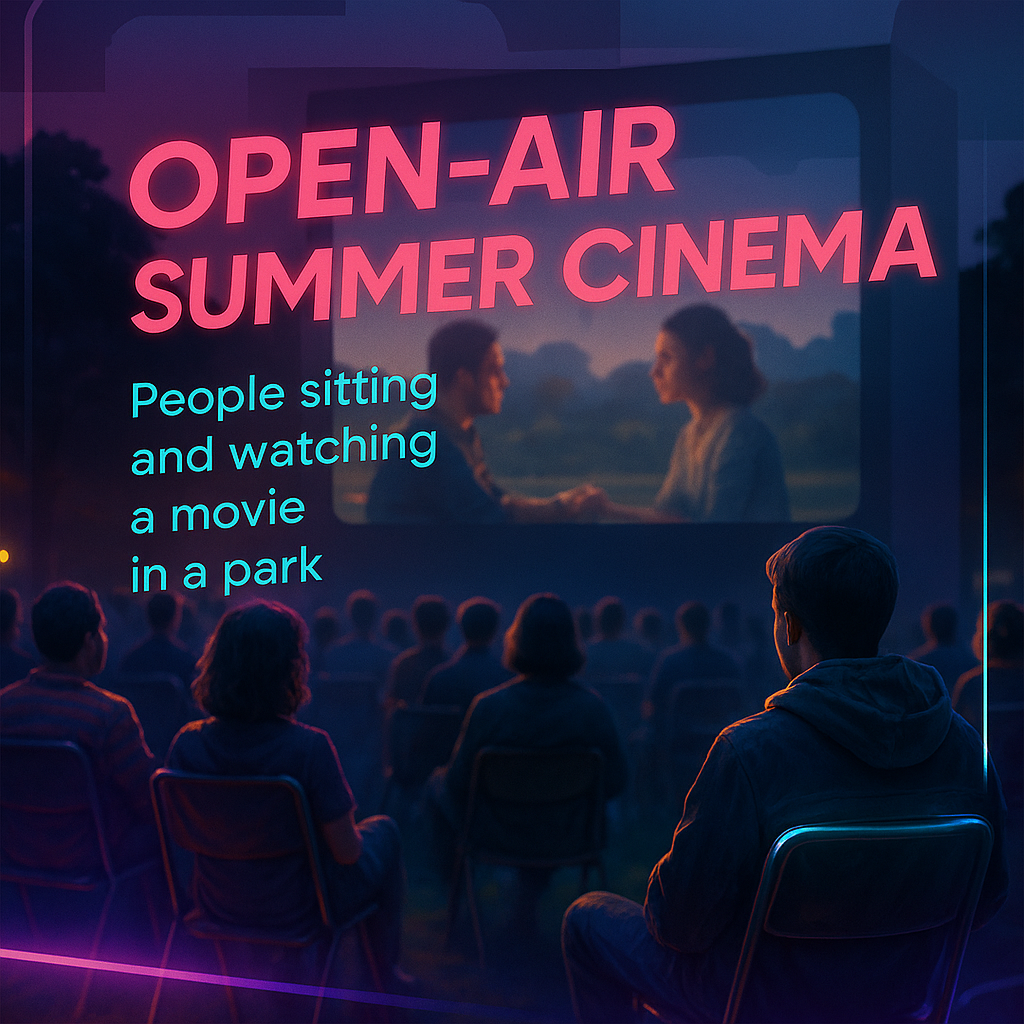 Open-Air Summer Cinema Scene with Relaxed Audience