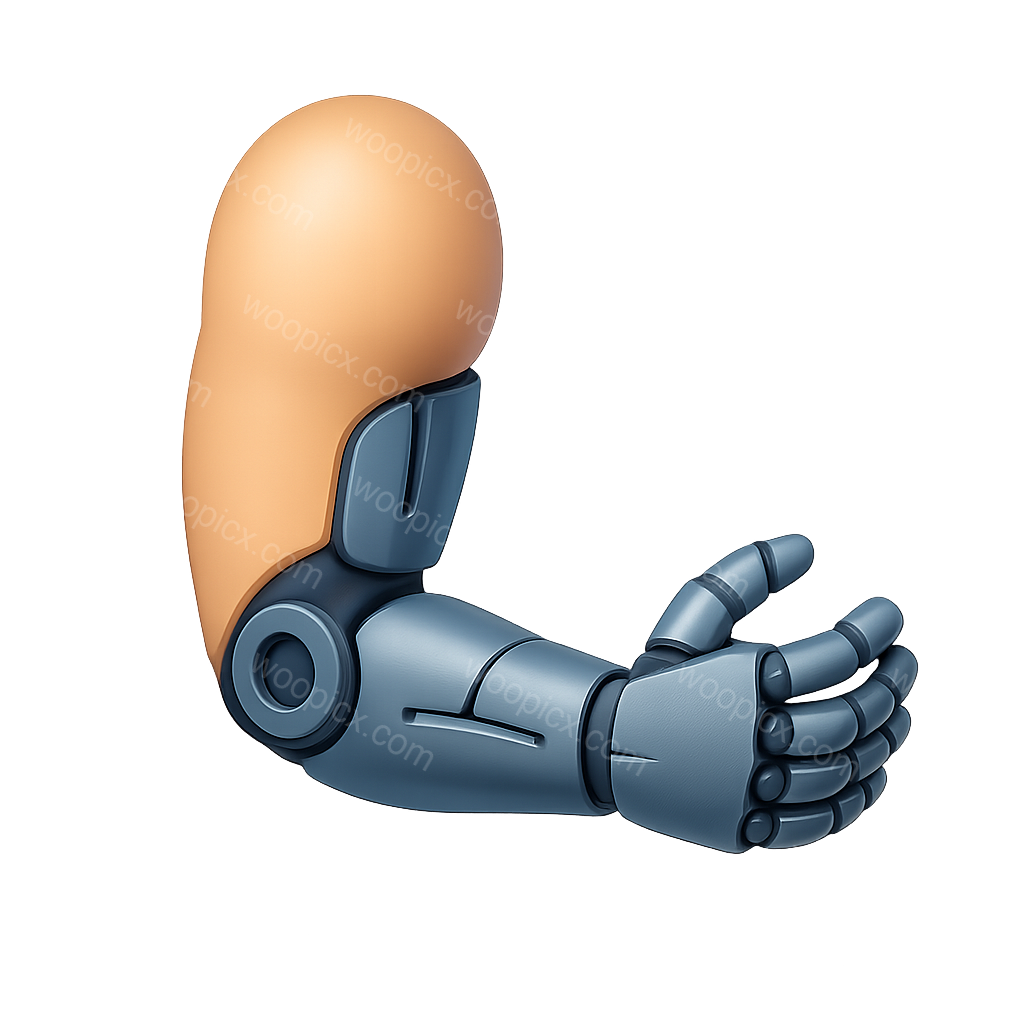 /Premium/Collection: /by davooda/Type: PNG/A stylized 3D icon of a bionic arm, showcasing a blend of human-like and mechanical features. The arm is depicted in a three-quarter view with a smooth gradient background, emphasizing its volumetric design.