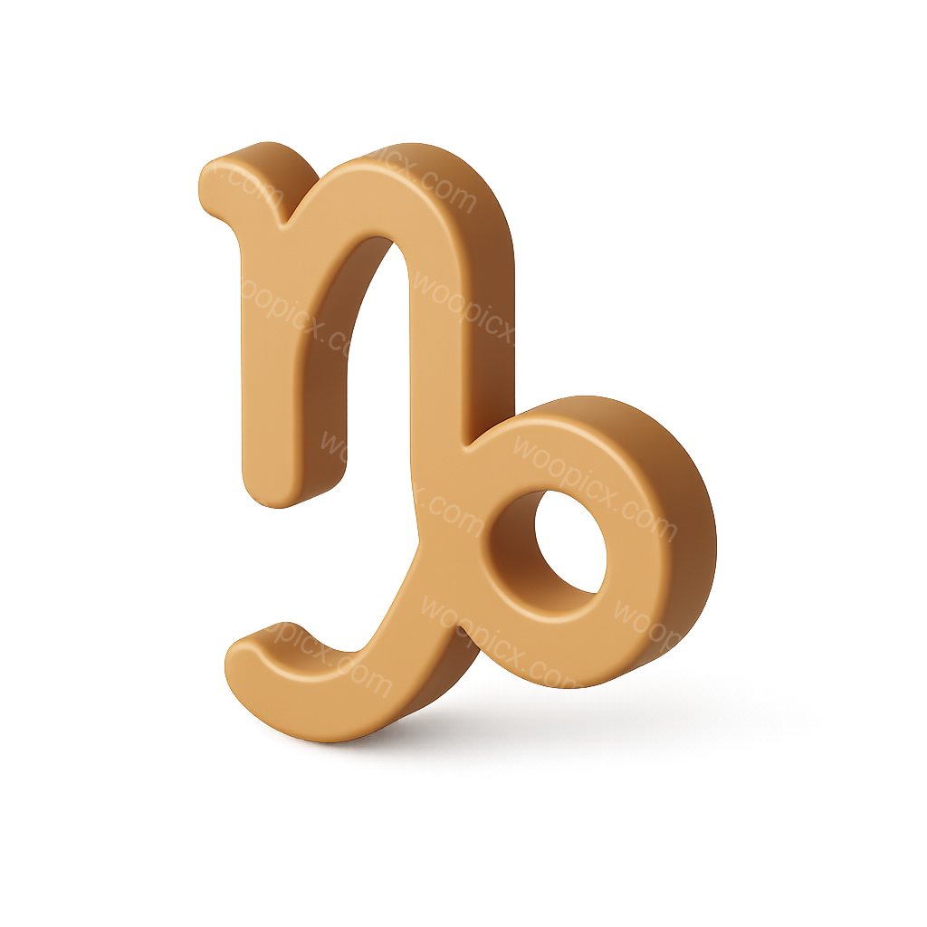 A sleek 3D representation of the Capricorn astrological sign, featuring a warm beige color with a glossy finish, set against a subtle gradient background.