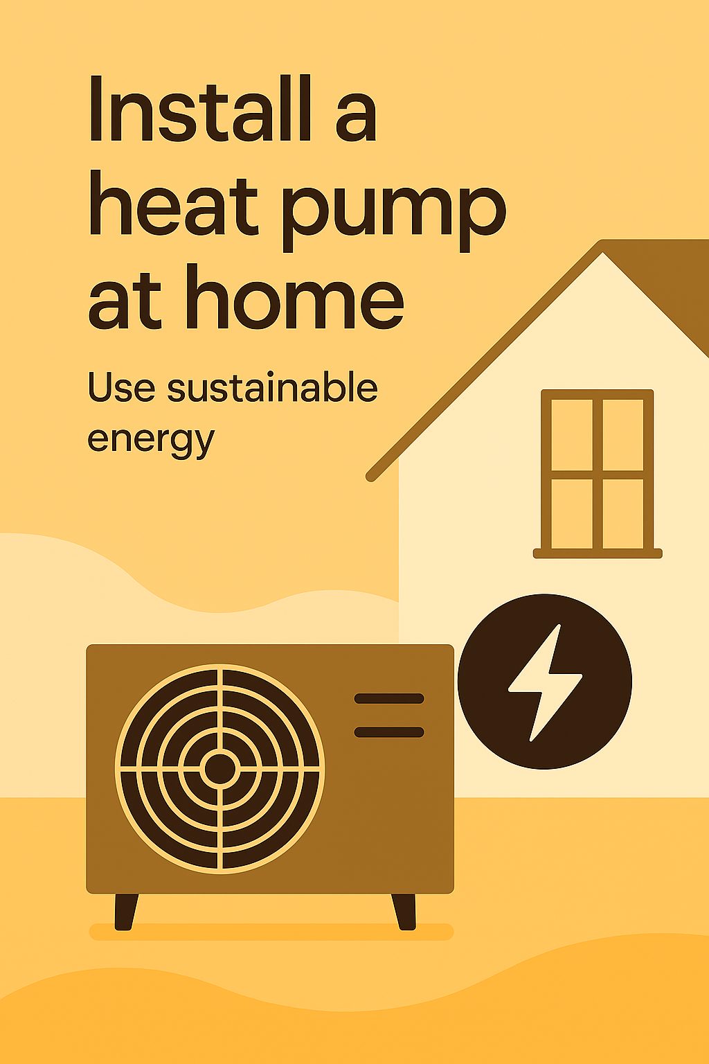 Vibrant graphic promoting heat pump installation at home, featuring a simple design and warm color palette, ideal for environmental awareness campaigns.