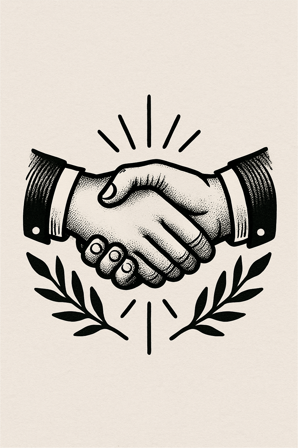 Vintage Handshake Illustration Symbolizing Agreement and Partnership