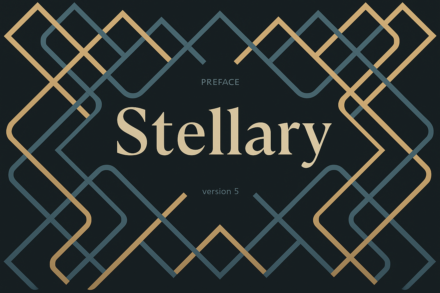 This image showcases an elegant color scheme featuring geometric patterns. The design includes intertwining lines and a sophisticated typography for the title 'Stellary' in a refined font.