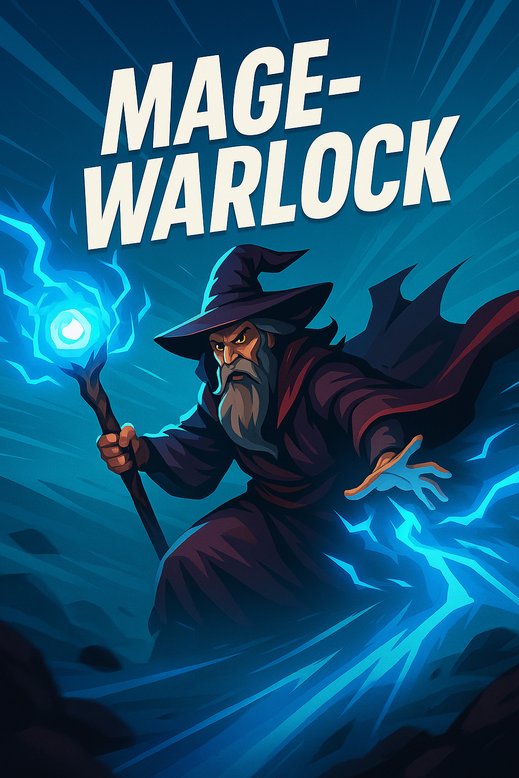 An intense depiction of a mage-warlock casting a spell, surrounded by dynamic energy and lightning. The character exudes power with a focused expression.