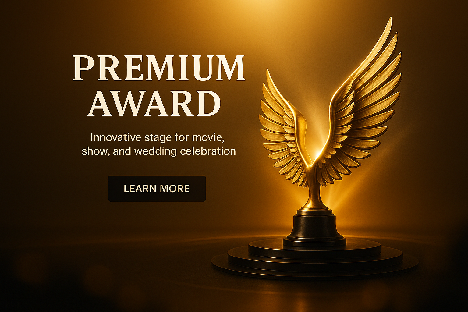 /Collection: /by davooda/Type: PNG/This image features a golden award trophy with wings, set against a warm background. It is designed for promotional use in event marketing, especially for movies and weddings.