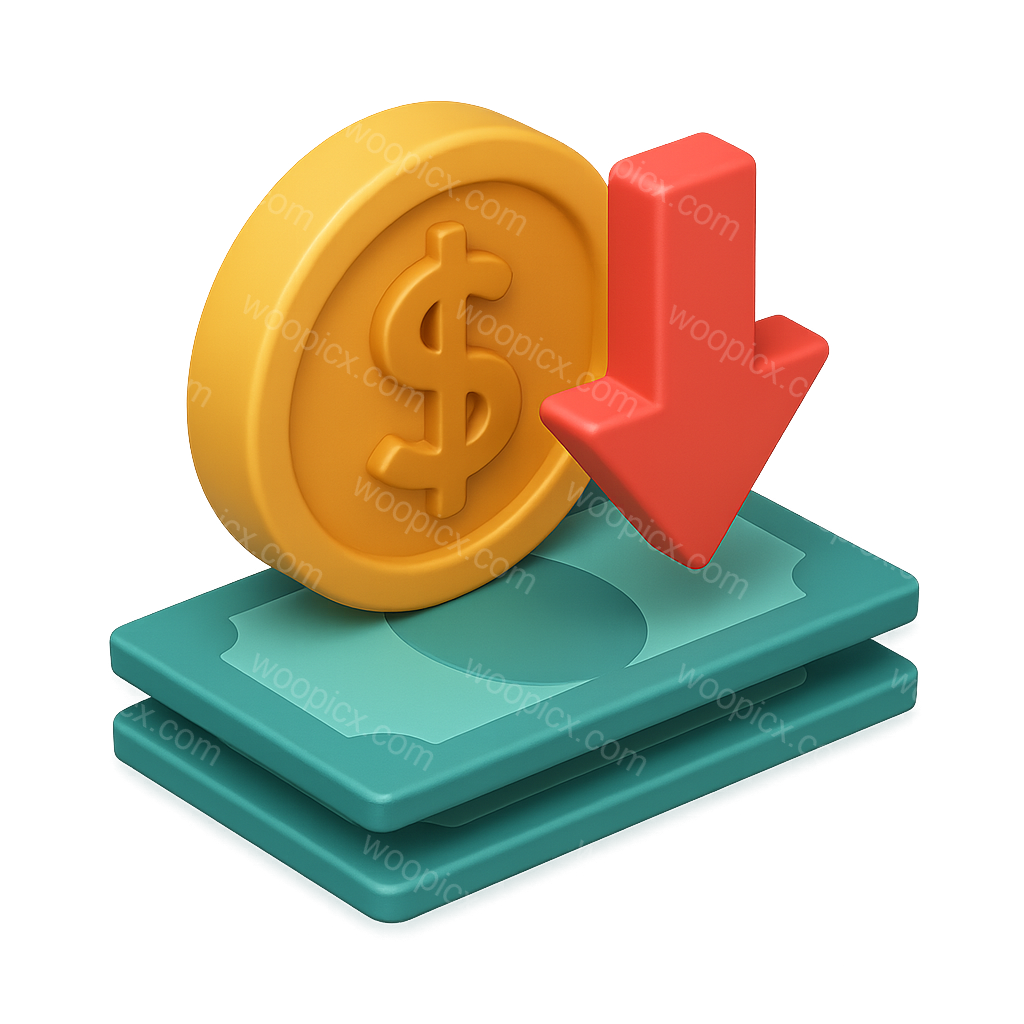 3D Icon Representing Currency Devaluation with Downward Arrow